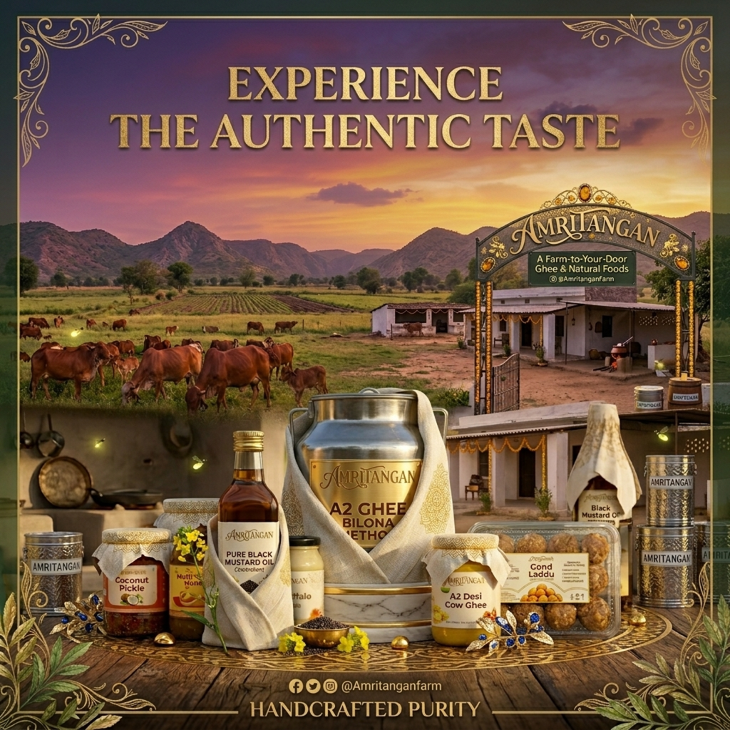 At Amritangan, we believe in delivering purity, tradition, and trust. Our products are sourced directly from villages where time-tested methods are still followed. From A2 cow ghee to cold-pressed oils and homemade pickles, every product reflects authenticity and care.